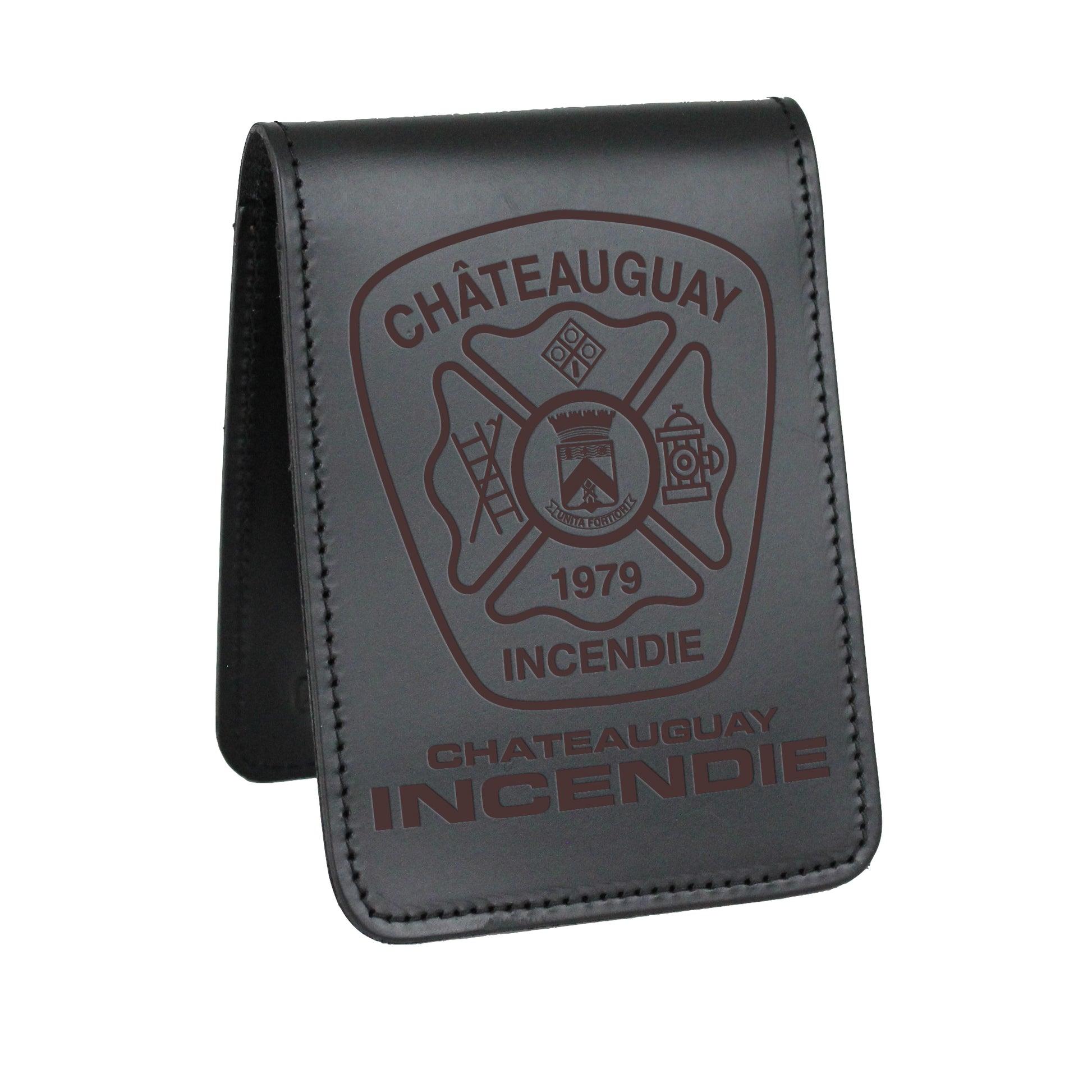 Our notes are something we use every day on shift, protect them with a custom Châteauguay Incendie evidence notebook cover. Precision laser engraved design with free personalization of a name and badge number.