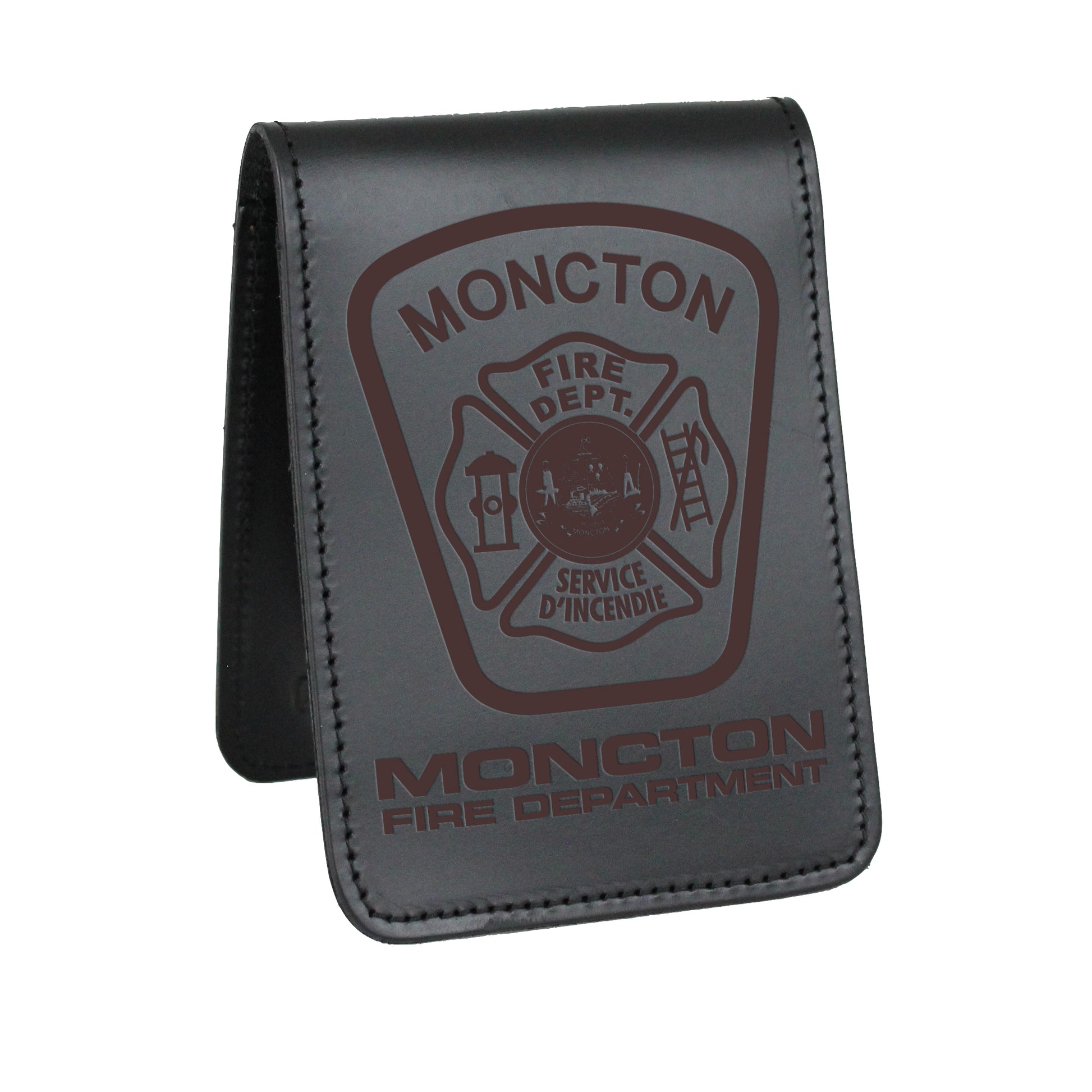 Our notes are something we use every day on shift, protect them with a custom Moncton Fire evidence notebook cover. Precision laser engraved design with free personalization of a name and badge number.